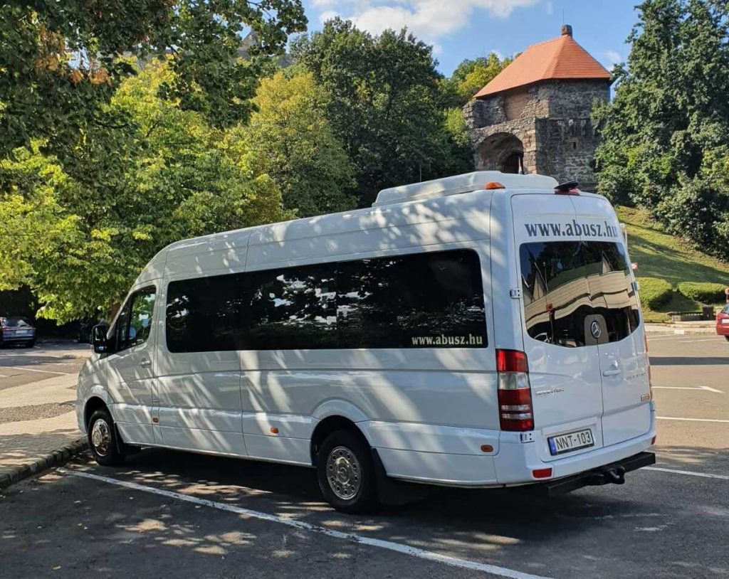 - 20-22 fős minibusz bérlés: részleges szállításra, például a távolabbról érkező vendégek esetén